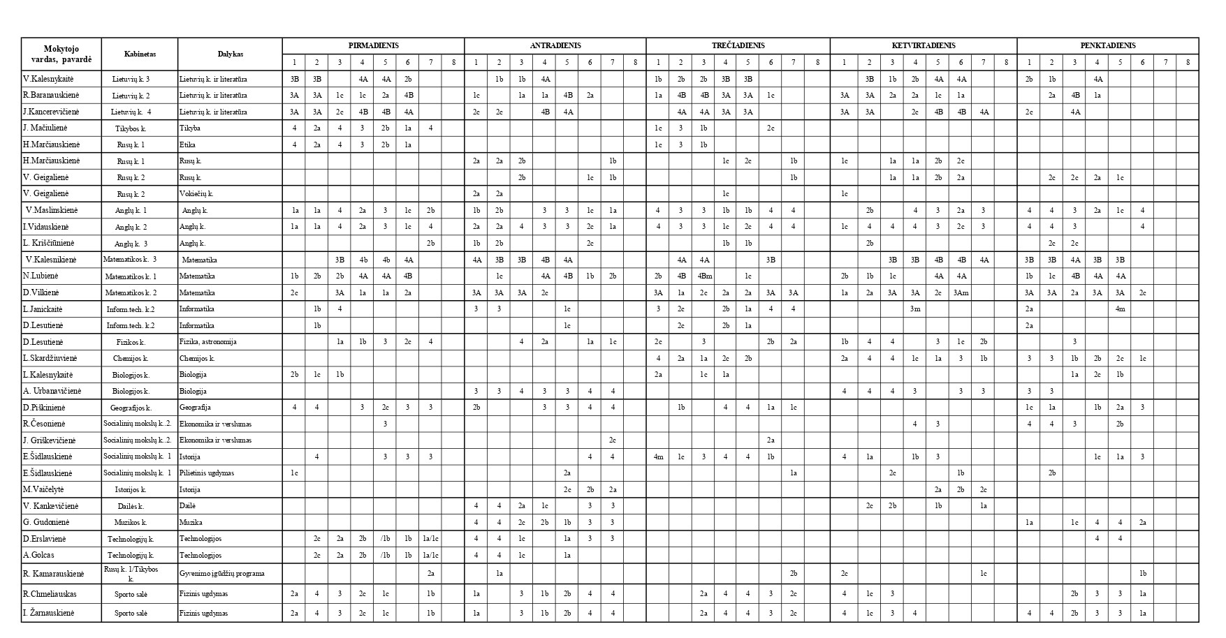 Bendras pamokų tvarkaraštis